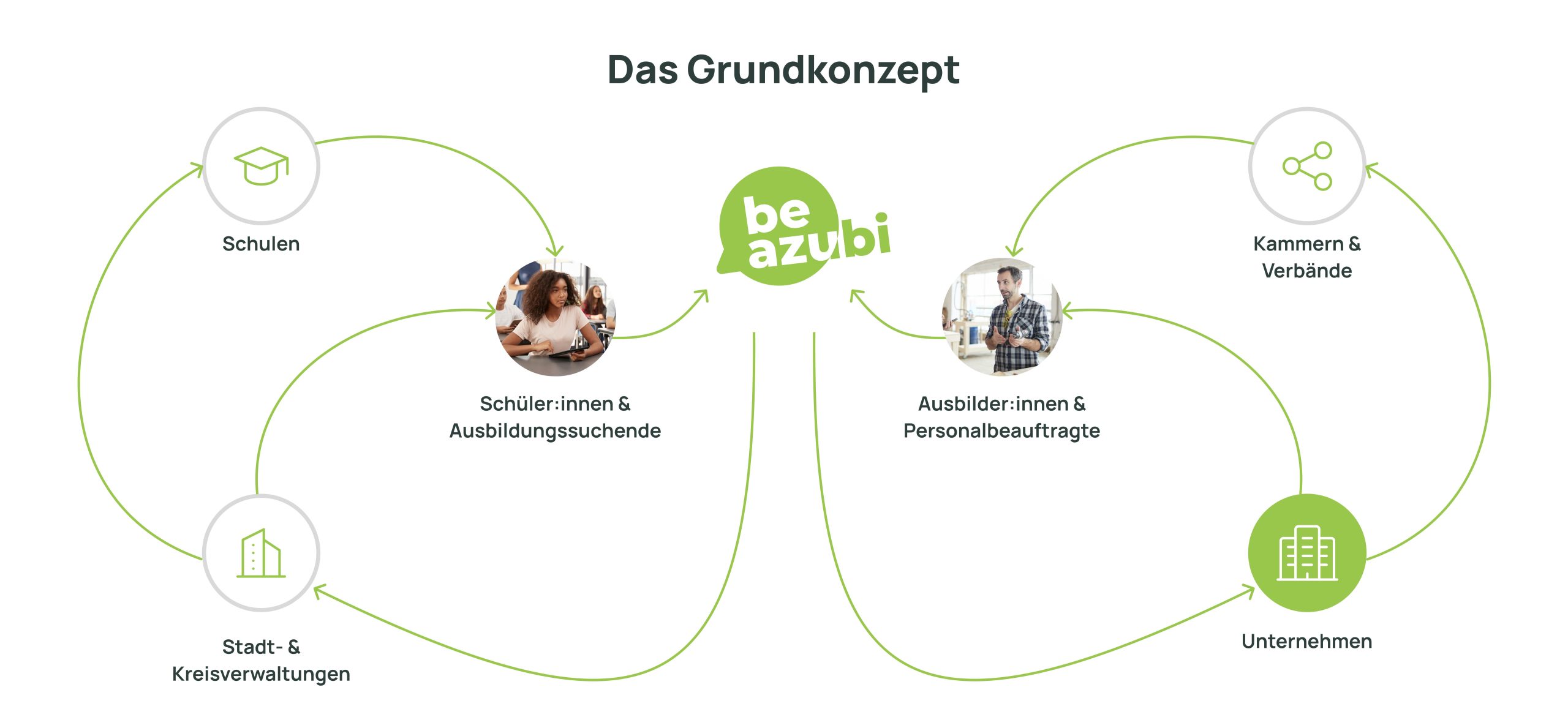 Das Ziel von beAzubi ist es alle Akteure im Übergang Schule-Beruf auf einer Plattform zu verbinden, um eine effiziente Möglichkeit zu bieten. Test