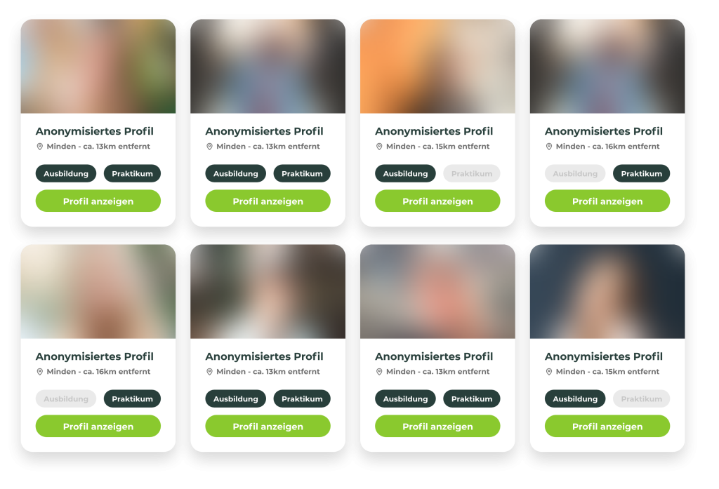 Anonymisierte Profile mit Mehrwert Konzentrieren Sie sich auf Kompetenzen und Stärken statt auf Noten oder Herkunft.