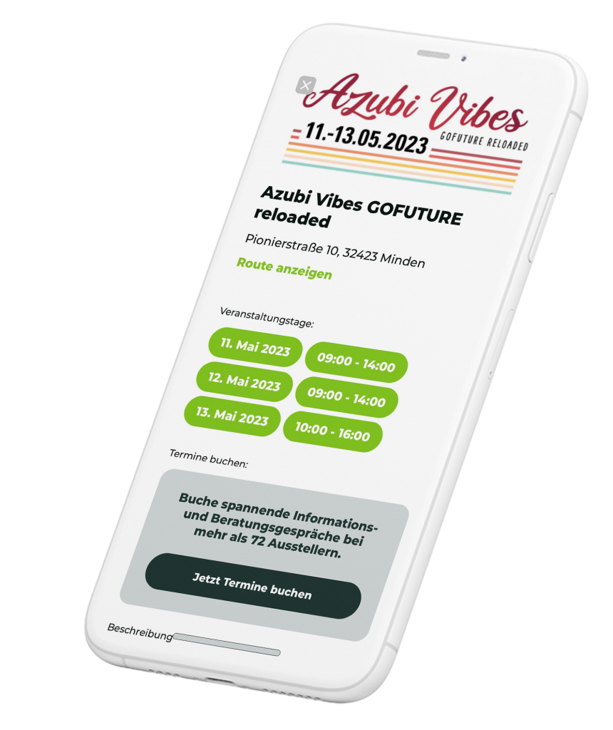 Jetzt kannst du deinen Termin auf der Messe buchen.